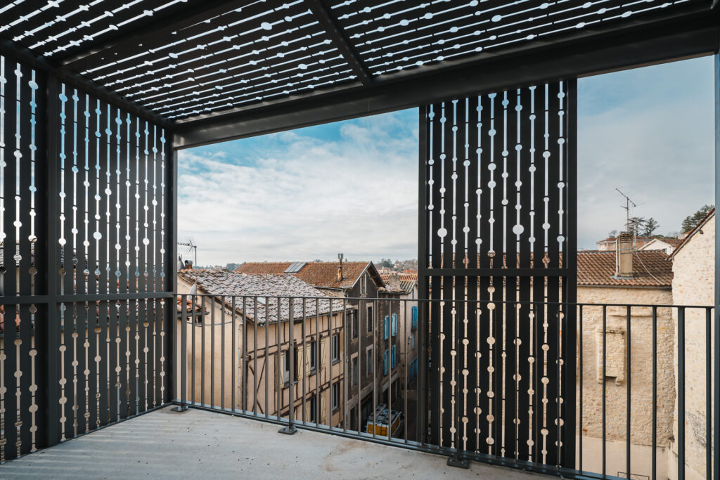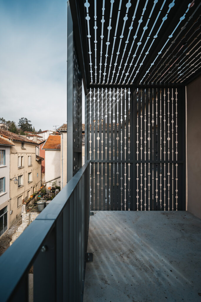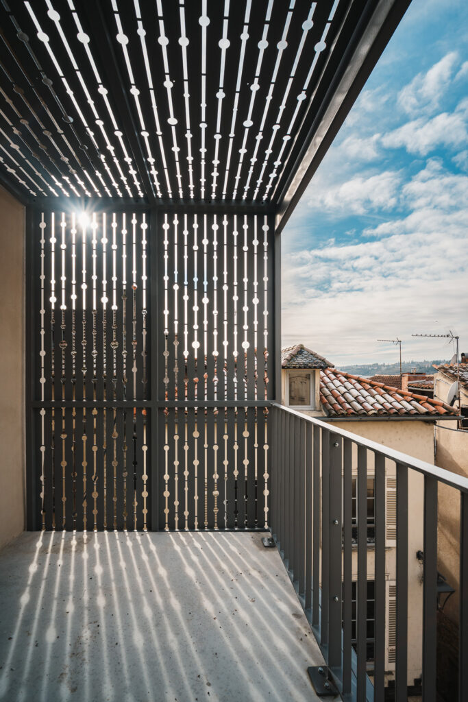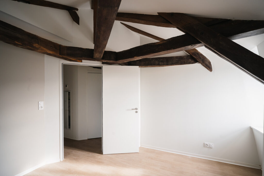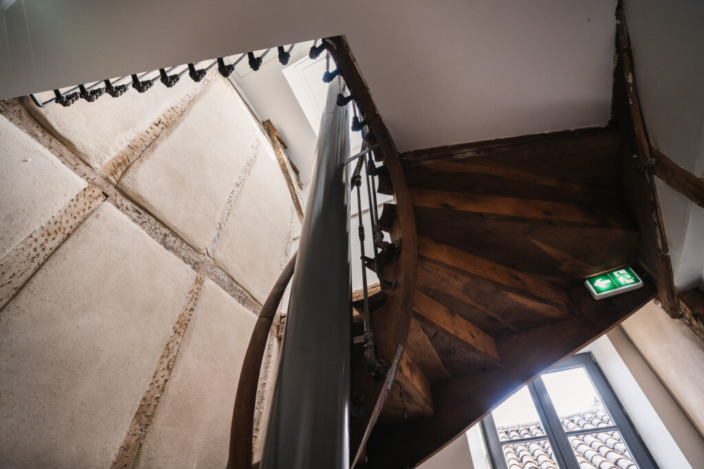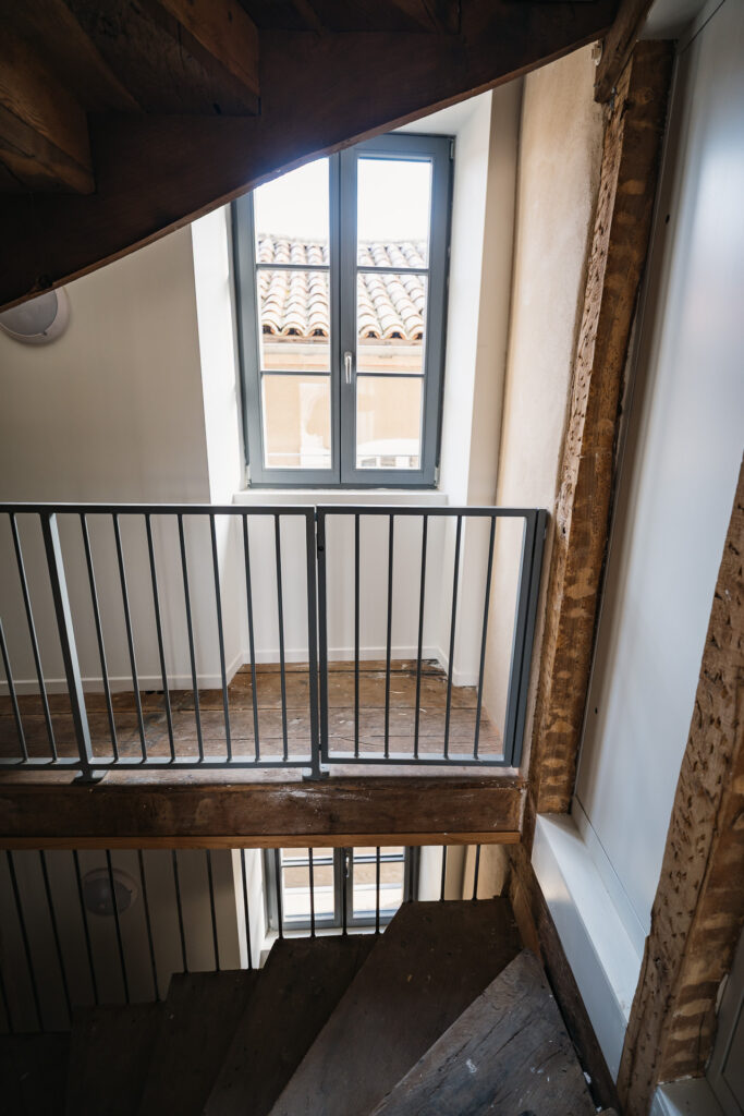 Le projet a permis la conservation et la mise en valeur d’éléments remarquables, notamment un escalier en bois existant, ainsi que la restauration des garde-corps et des volets en bois. De nouveaux balcons ont également été créés pour enrichir les usages et les perspectives.